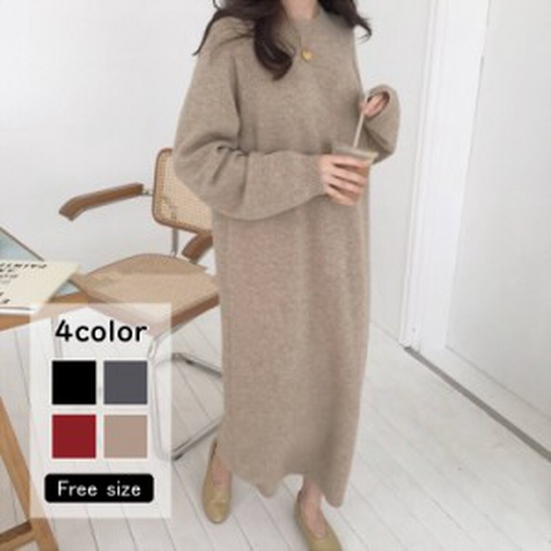 ワンピース ニットワンピース ロング丈 マキシ丈 丸首 長袖 ゆったり