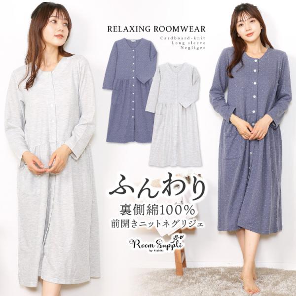ネグリジェ 前開き 長袖 秋 パジャマ ワンピース ルームウェア ロング