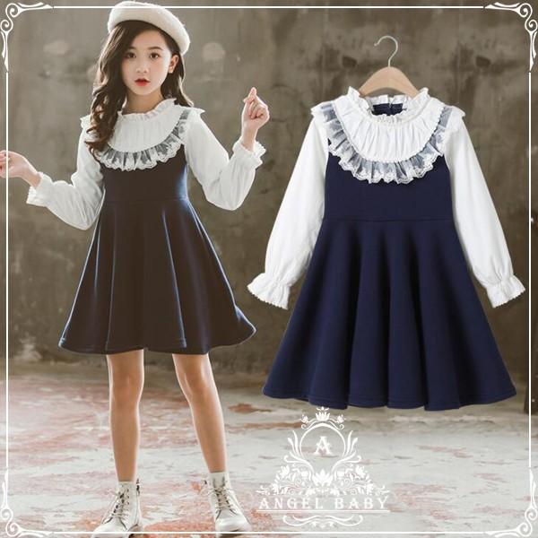 女の子 フォーマル スカラップレース白襟ワンピース 長袖 卒服 2019